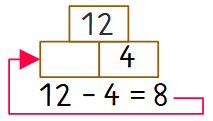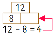 Im Beispiel 3 musst du mit der Umkehraufgabe rechnen. Das Ergebnis schreibst du in den linken Fußstein.
