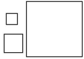 Oben siehst du drei unterschiedlich große Quadrate. Bei jedem Quadrat sind die vier Seiten gleich lang.