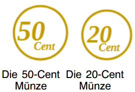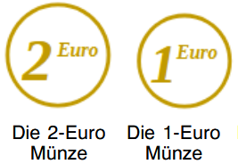 Es gibt Euro-Münzen und Euro-Scheine.