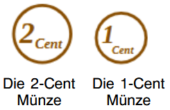 Alle diese Zahlen besitzen einen Punkt oder ein Komma. Die Zahlen links vom Komma werden als Euro gelesen und die Zahlen rechts vom Komma werden als Cent gelesen. Ganz rechts von der Zahl befindet sich das Euro-Zeichen €.