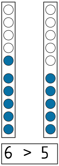 Auch Mengen lassen sich miteinander vergleichen. Dazu muss vorher abgezählt werden, wie groß die Mengen sind. Schaue dir das Beispiel mit den beiden Punktstreifen an.