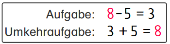 Du hast Plusaufgaben und Minusaufgaben kennengelernt. Es gibt Plusaufgaben, die man mit einer Minusaufgabe zurückrechnen kann. Eine solche Minusaufgabe nennt man dann Umkehraufgabe.