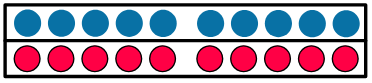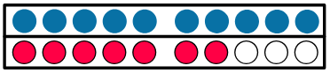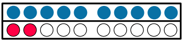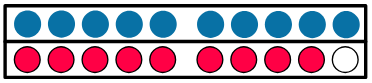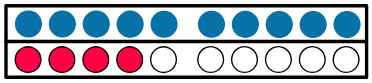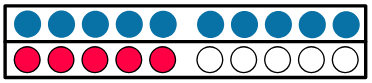 Bei diesen ersten Aufgaben hast du immer 10 blaue Punkte. Die roten Punkte, die du dazu bekommst, kannst du mittlerweile mit schnellem Blick erkennen und zum Zehner dazurechnen.
