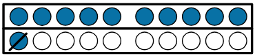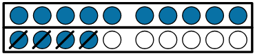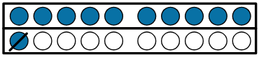 Das Zwanziger-Punktfeld für Minusaufgaben ist für dich leicht zu verstehen. Alle Punkte sind hier blau. Die Punkte, die weggenommen, also abgezogen werden, besitzen einen schwarzen schrägen Strich.