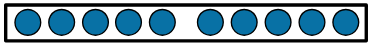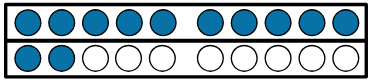 Im Bild siehst du 12 Punkte. Interessant ist, wie diese Punkte aufgeteilt sind. Im oberen Streifen liegen 10 Punkte. Das ist also ein Zehner. Im unteren Streifen liegen 2 Punkte. Da 2 kleiner als 10 ist, nennt man diese 2 Punkte „zwei Einer“.
