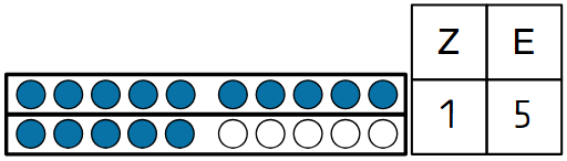 Und dann gleich noch ein weiteres Beispiel im folgenden Bild. Erkennst du sofort, wie viele Zehner und Einer vorhanden sind? Erkläre, warum in der Tabelle die Zahlen 1 und 5 stehen.