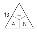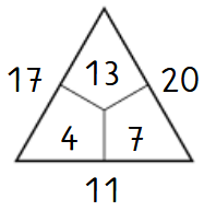 Diese Zahlen müssen, wie bei den Zahlenmauern, miteinander plus- oder minusverrechnet werden. Die Ergebnisse dieser Berechnungen werden außen an den Seitenlinien des Dreiecks geschrieben.